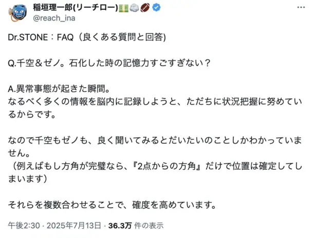 『Dr.STONE』原作者がXで“裏解説”FAQを投稿 「千空&ゼノの記憶力すごすぎない?」