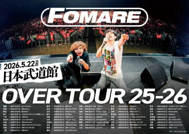 FOMARE、47都道府県を巡る全国ツアー『OVER TOUR 25-26』開催 バンド初の日本武道館単独公演も
