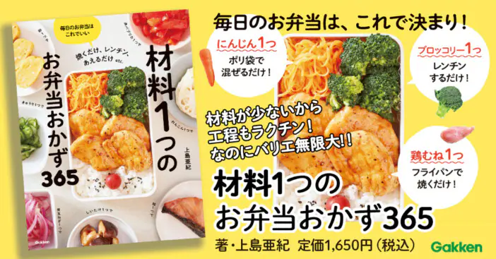 レシピ本『材料1つのお弁当おかず365』が2月6日にGakkenより発売された。 お弁当レシピ本のトレンドはシンプルにミ…