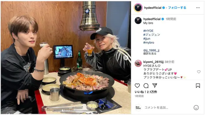 ジェジュンが、自身のInstagramを更新。HYDEとのツーショットを公開した。 ジェジュンは、HYDEとともに11月14…