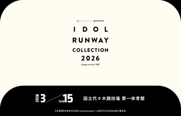 ニュース 2025.12.24 20:42 『IDOL RUNWAY COLLECTION 2026』乃木坂46、FRUITS ZIPPER、CANDY TUNEら出演 公式アプリ配信も 2026年3月15日に、国立代々木競技場 第一体育館にて『CREATEs presents IDOL RUNWAY COLLEC… リアルサウンド編集部 CANDY TUNECUTIE STREETFRUITS ZIPPERTOKYO GIRLS COLLECTION女性グループ乃木坂46JPOPアイドル高嶺のなでしこIDOL RUNWAY COLLECTION