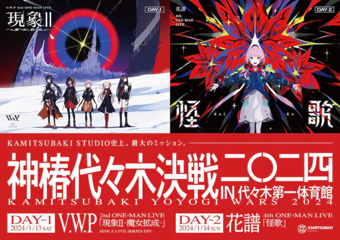 KAMITSUBAKI STUDIOが、創設以来最大規模のアリーナ公演『神椿代々木決戦二〇二四』を2024年1月に2D…