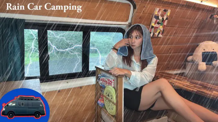 キャンプ系YouTuberのこむすびチャンネルが、自身のYouTubeチャンネルを更新。雨の中車中泊をする様子を公開した。