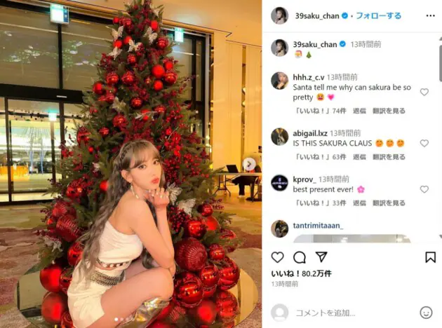 LE SSERAFIM SAKURA(宮脇咲良)、ノースリーブ&ミニスカでクリスマス 太ももが露わな服装に反響