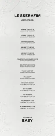 LE SSERAFIMの3rdミニアルバム『EASY』のプロモーションタイムテーブルが公開された。 公開された画像は、ホ…