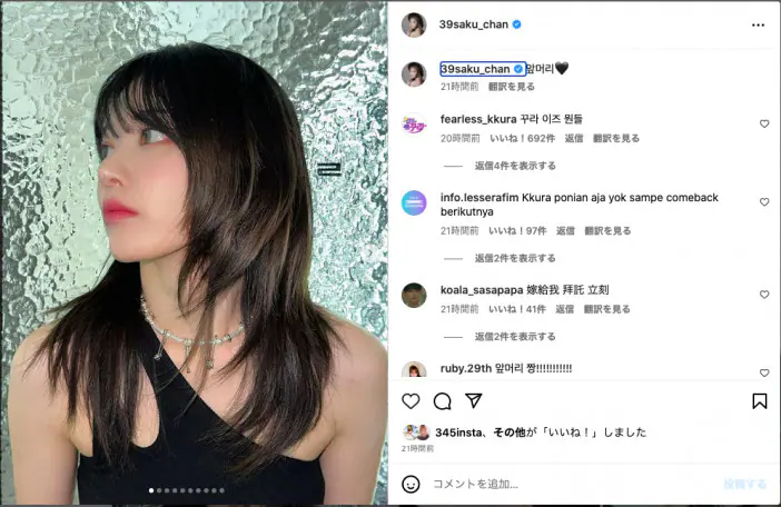 LE SSERAFIM SAKURA(宮脇咲良)、久々の前髪復活にファン歓喜 美麗な最新ビジュアルを大量アップ