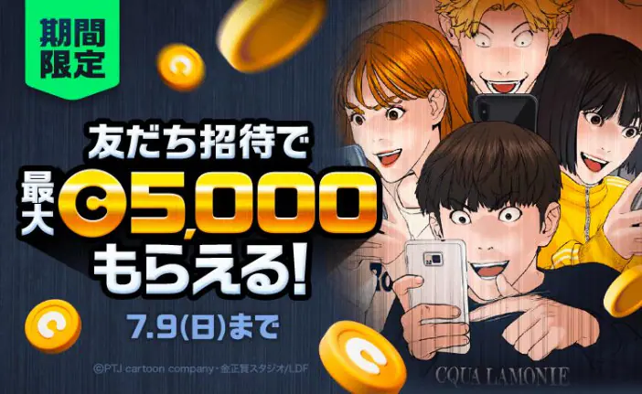 電子コミックサービス「LINE マンガ」において、7月3日から7月9日まで、最大5,000マンガコインがもらえる友だち招待キャン…