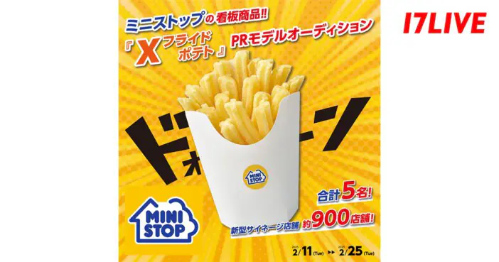 ニュース 2025.02.14 14:08 17LIVE、ミニストップとの初コラボ「『Xフライドポテト』 PRモデルオーディション」を開催中 17LIVEは、「ミニストップ」の看板商品「Xフライドポテト」のPRモデルを選出するオーディションイベントを開催している。入賞者… リアルサウンドテック編集部 オーディション17LIVE17LIVE特集ニュースイチナナミニストップ