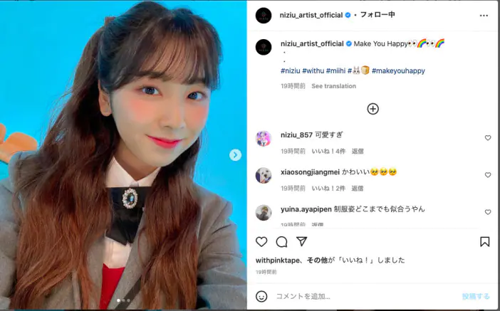 NiziUのMIIHIが、1月30日に公式Instagramを更新。WithU(ファンの総称)の期待に応える投稿を行った。 …