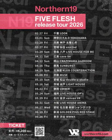 Northern19が、ニューEP『FIVE FLESH』を2026年2月25日にリリース。あわせて、リリースツアー『FIVE …