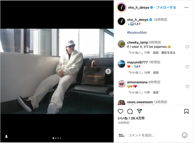 平野紫耀が、エスパス ルイ・ヴィトン東京に訪れた際の写真を自身のInstagramに投稿した。
