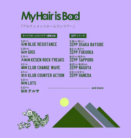 My Hair is Badが、4月13日リリースのフルアルバム『angels』を携えて、『アルティメットホームランツアー』を開…