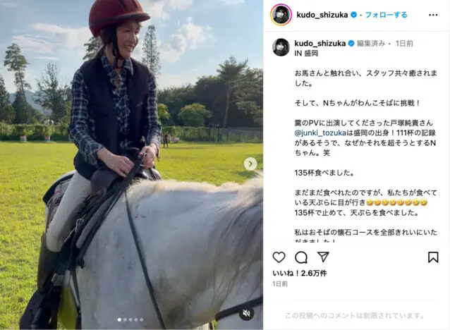 工藤静香、絵になる乗馬姿に反響 颯爽と乗りこなす姿に「騎乗姿がキレイ」「何でも出来ちゃう」