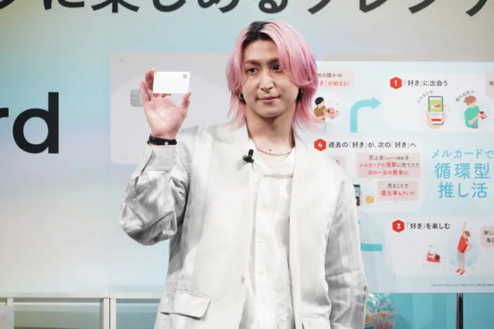 Snow Manの佐久間大介が、都内で開催されたメルペイ「好きを楽しむ。メルカード」新CM発表会に出席。最近の“推し活”事情を明…
