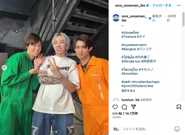 Snow Manの冠番組『それSnow Manにやらせて下さい』(TBS系)の公式Instagramに、メンバーの向井康二と阿部…