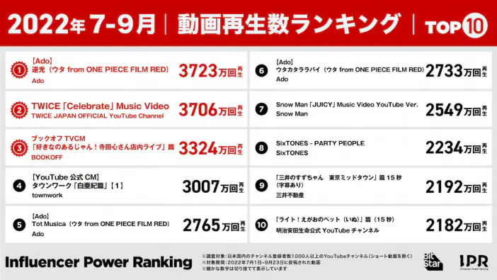 先週の人気YouTubeランキングTOP10 THE FIRST TAKE&コムドット“赤組”企画が連続ランクイン