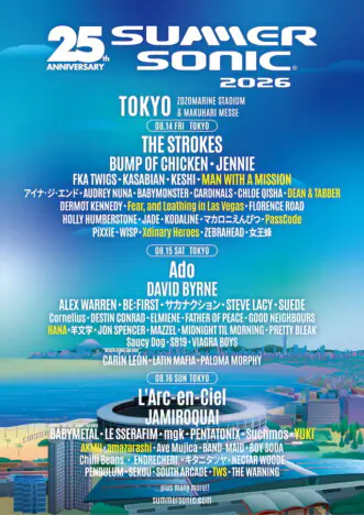 8月14日~16日に東京と大阪の2会場にて開催される『SUMMER SONIC 2026』の、日程別ラインナップが発表された。 …