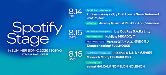 Spotifyが、8月14日~16日に開催される『SUMMER SONIC 2026』にて、コラボステージ“Spotify St…