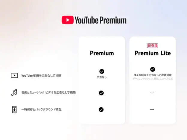 ニュース 2025.09.26 14:10 月額780円でYouTubeの広告なしに 新プラン「YouTube Premium Lite」が日本でも提供開始 YouTubeは、月額780円(税込)で動画を広告なしで楽しめるプラン「YouTube Premium Lite」の試験的… リアルサウンドテック編集部 YouTubeGoogleYouTube Premium Lite
