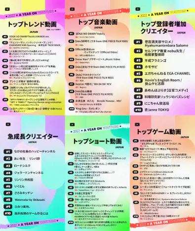 YouTubeが、2022年の「日本のYouTube年間ランキング」を発表した。 2022年にYouTubeにアップロードさ…