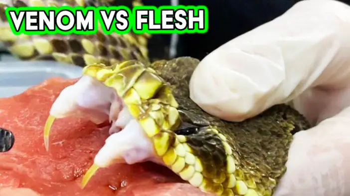 毒ヘビに噛まれた肉はどうなる? 海外YouTuberが生の牛肉を使い検証実験