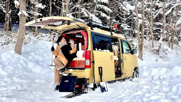 2024年12月19日、YouTuberの「こむすびチャンネル」が自身のチャンネルにて、大雪のなかでの車中泊の様子を公開した。「…