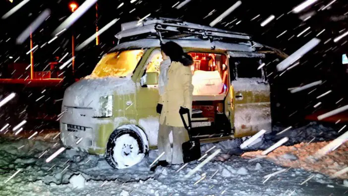キャンピングカー仕様に改造した38万円の軽自動車で日本一周の旅をするカップルYouTubeチャンネル「軽バン生活」。ついに冬の北…