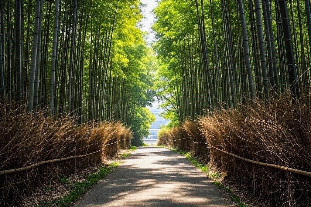 こちらの竹林の画像です! こちらの画像はよく見ると画質がデコボコしているので、気づけた人も多いのではないでしょうか。ただ、そこ以外の構図や竹林っぽさはとてもよく再現されています。どちらかというと皇居の写真の方がAIっぽいと感じたのは筆者だけですかね?