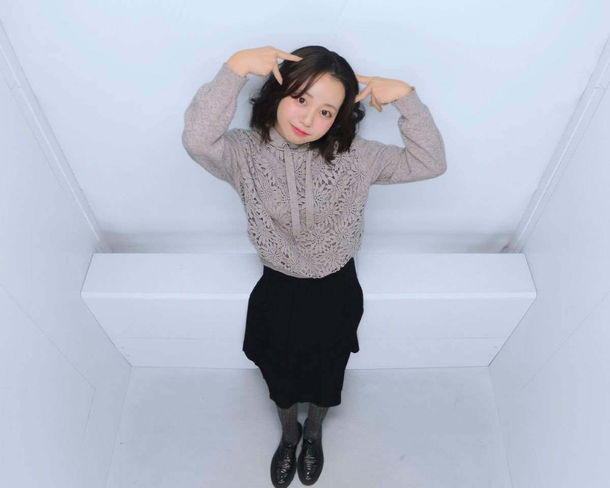 ハイアングルショットは、斜め上に設置してあるカメラに向かって撮影が開始する。後ろに腰掛けて撮影することもできるが、低身長の人は立って撮影する方が可愛く撮れる気がしたのでおすすめだ。(150㎝の筆者が両方検証済み)