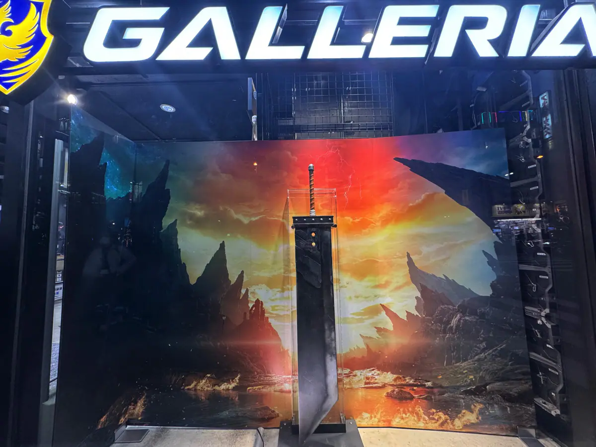 店頭に到着してまず目に入るのが、巨大な「バスターソード」の展示。作中でクラウドが使いこなす大剣は存在感抜群で、足を止めて見入る観光客の姿もあった。