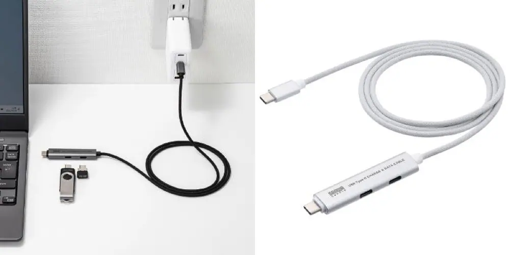 USBハブ一体型のType-C充電ケーブルが登場 2ポート増設可能、ハブ単体としても利用できる