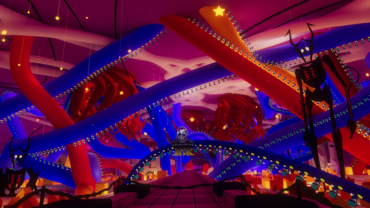 三日坊主:どうしてこうなったんでしょうね(笑)。もともと、tktkさんと曲の中にある音を聴きながら、工場のベルトコンベアのようなもので進んでいくみたいな感じだと面白いんじゃないかという話が出たんですよね。なので、ここからはライド形式でにしよう、とそこで決めました。