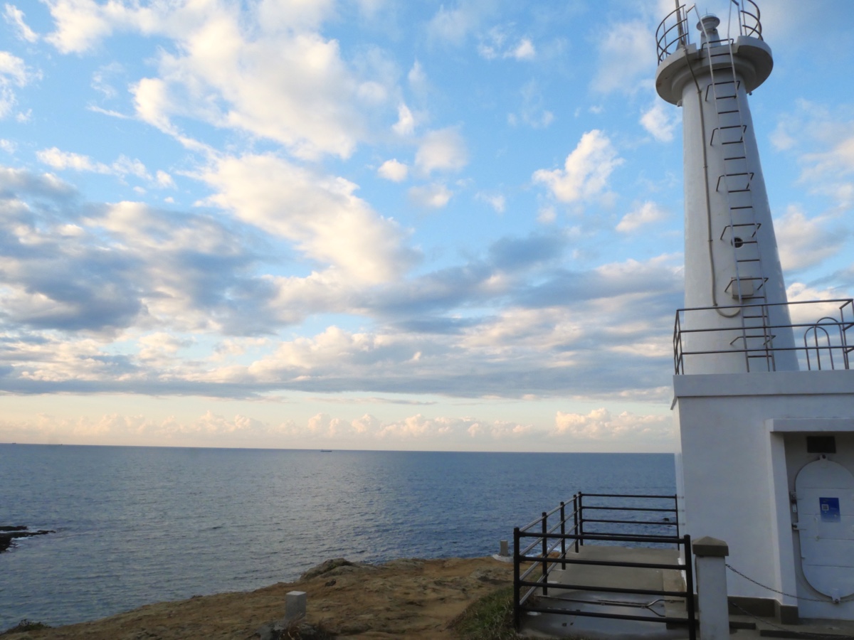 結果は……惜しい! ここは夕日の絶景スポットとして有名なところなのですが、私が行った日は少し雲が多く、夕陽が隠れてしまっていました。でも白い灯台は可愛く、開放感マックスでとても気持ちよかったです。
