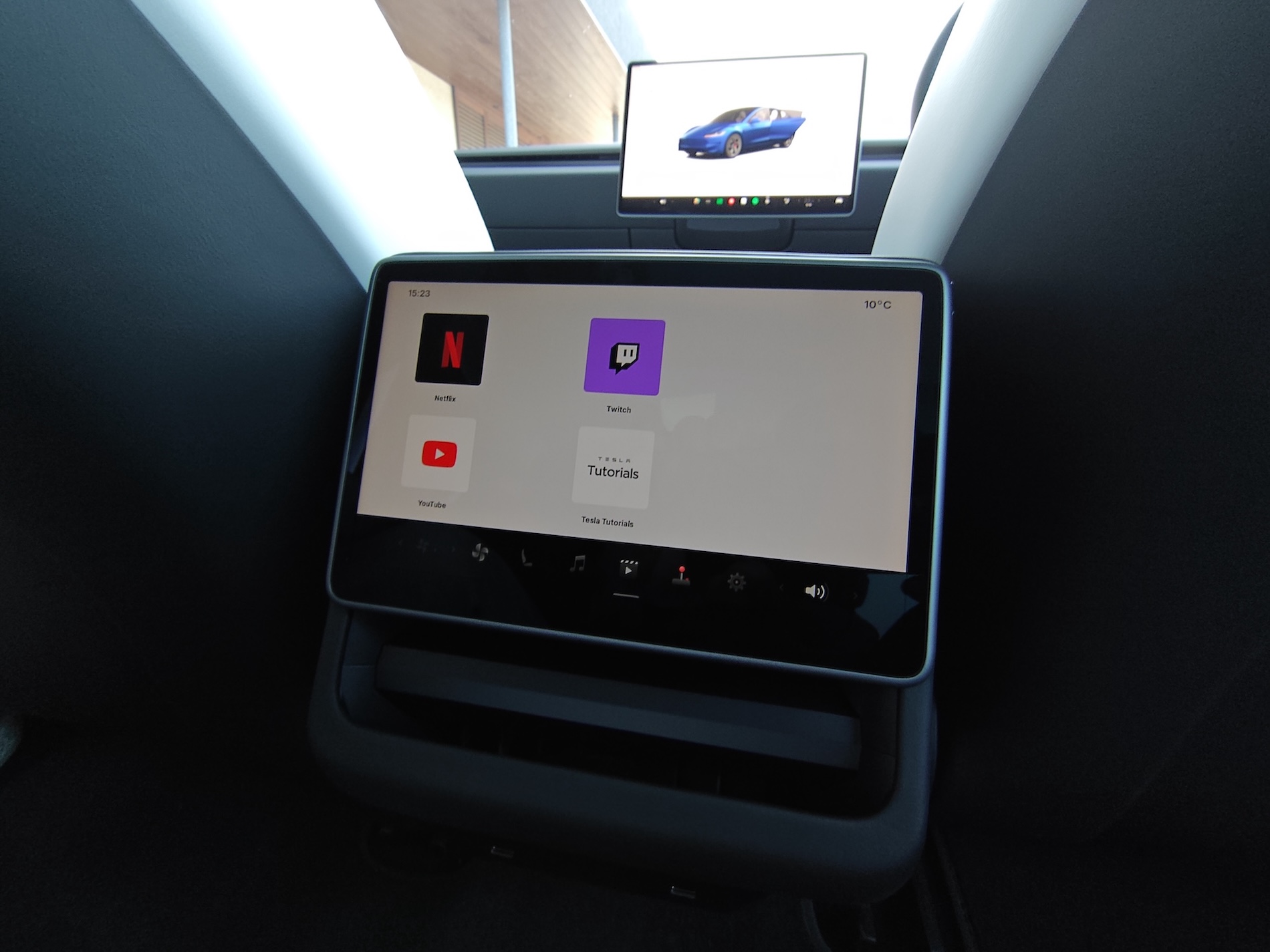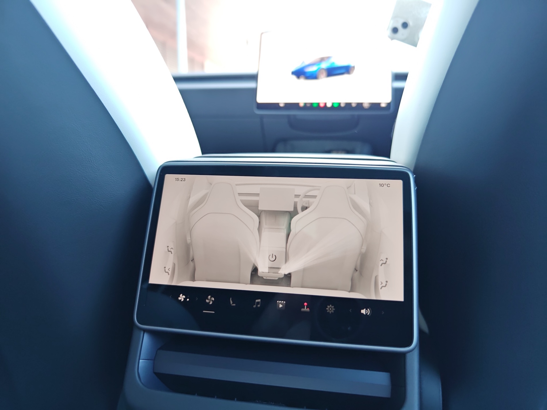 後席の広さはモデル3に共通する美点の一つだが、アップデートにより後席用のパネルが追加された。この8インチディスプレイは前席同様に空調のコントロールはもちろん、ゲームや「YouTube」など各種エンターテイメントが楽しめるようになっている。