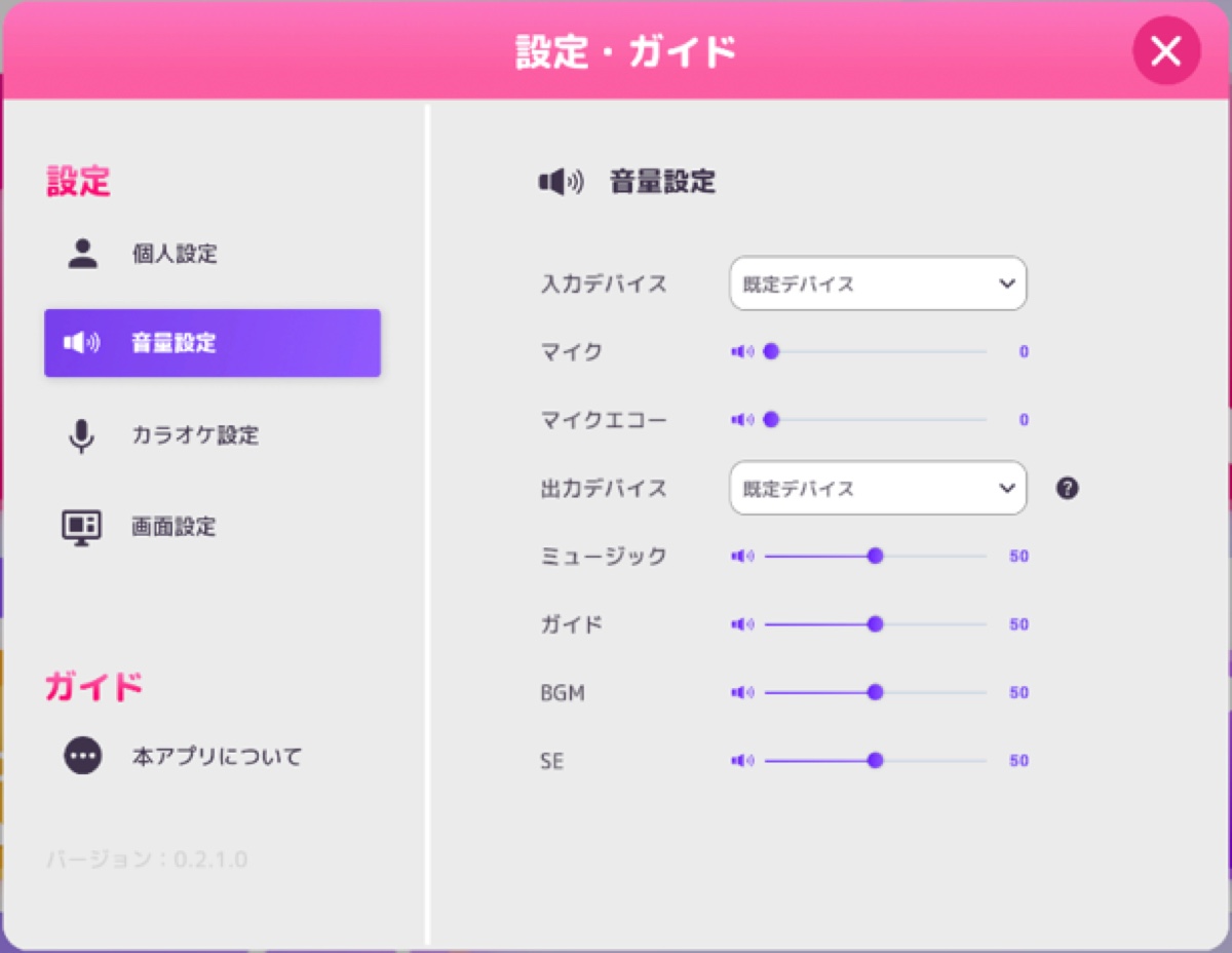 まずはカラオケソフト自体の設定からだ。JOYSOUND for STREAMERとカラオケJOYSOUND for Steamには標準でマイクの入力機能が備わっているが、これはカラオケソフト単体での利用を想定して搭載されたもの。今回のように機材を揃えている場合は、マイクの返し・エコーをそのまま利用するのがベターなので、ソフトの設定でマイク音量、エコー音量を0にしておこう。