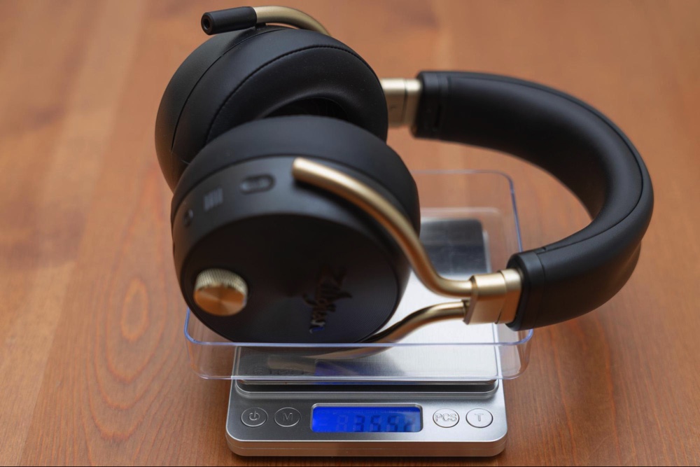ちなみに重量を計ってみるとヘッドホン本体が約355g(公称値356.8g)、ケース込みで約710g。ケース・アクセサリーと本体の重さがほぼ同じで、結構重たい。