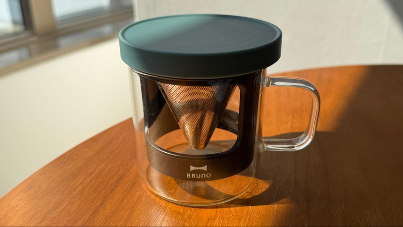 こちらは、オシャレでかわいいキッチン用品を多数扱う「Bruno(ブルーノ)」の「パーソナルコーヒードリッパー」。ステンレス製のメッシュフィルターと台座がグラスカップ内に収まるデザインになっていて、これならデスクの上に置いておいてもステキかも。