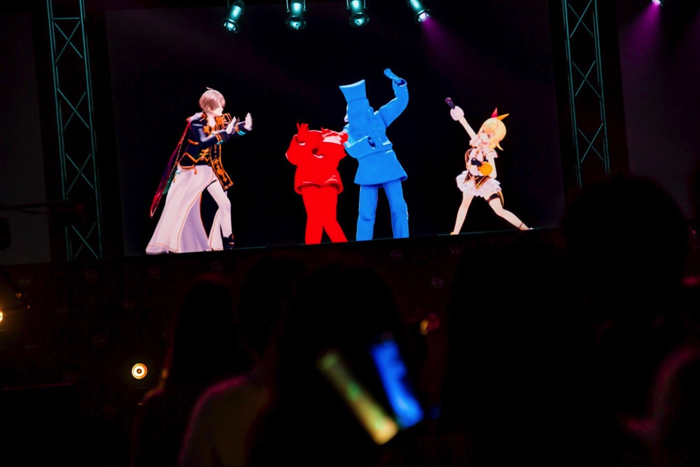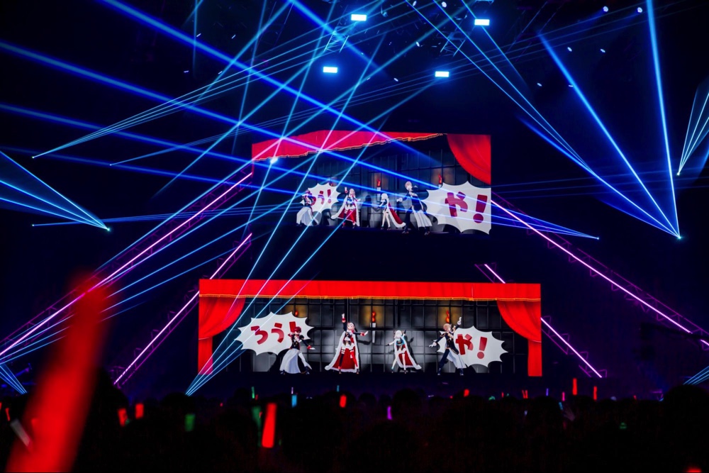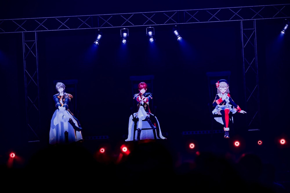 そんな2人のダンス&シングにつづくように、複数人でのダンスに重きをおいたパフォーマンスがつづく。える、ローレン、甲斐田が3つの並んだ椅子を横に移動しながらダンスをしていく「オルターエゴ」を披露すれば、Gigaによる「Ready Steady (feat. 初音ミク,鏡音リン, 鏡音レン)」を披露する星川、風楽、ソフィア3人は緩急のついたフォーメーションダンスをみせてくれた。
