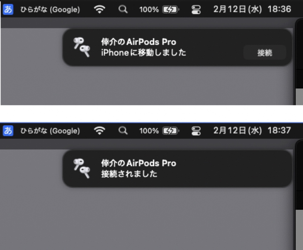 アクティブノイズキャンセリングを搭載した完全ワイヤレスイヤフォンにはいくつかの選択肢があるものの、日常的にMacとiPhoneの画面を行き来する僕にはその選択肢がほぼなく、「AirPods Pro一択」という状況だったのも購入を後押しした理由。「AirPods」シリーズはiPhoneとMacの接続を自動で切り替えてくれるのがありがたい。