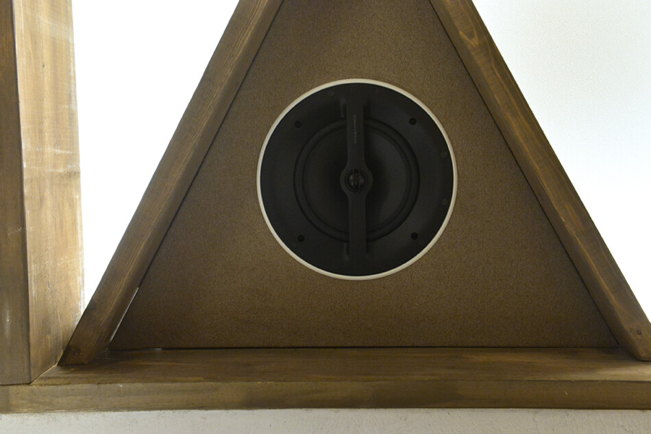 - 壁埋め込みのサラウンドスピーカー。