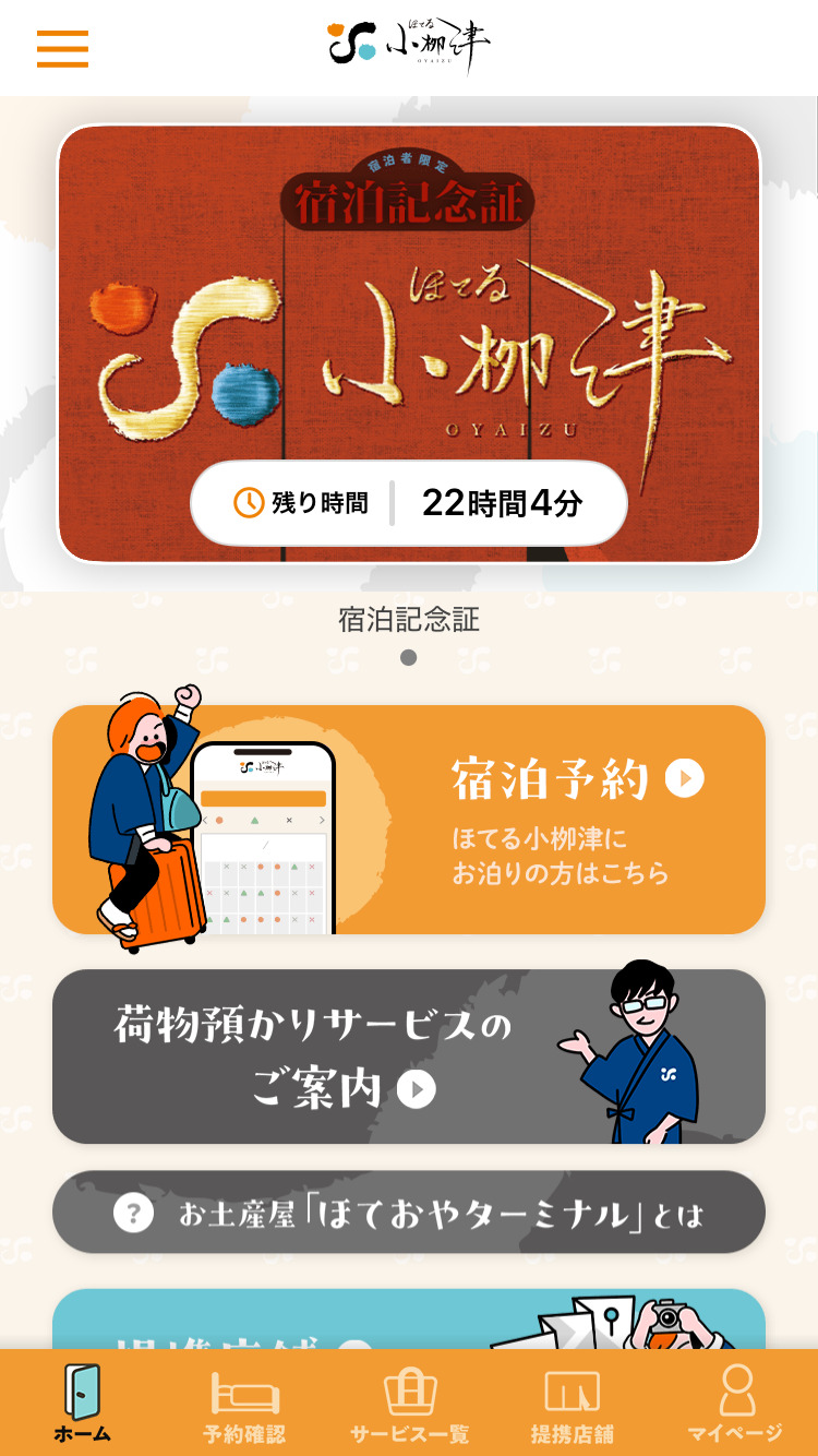 また、2025年の2月4日に東岡崎駅のSWING MALL 1階に「ほてる小栁津ターミナル」がオープン。そこでは『ほてる小栁津』に宿泊をしない人でも、『ほてる小栁津』グッズや岡崎市のお土産が購入することができ、空き状況によっては、当日又は翌日のみ『ほてる小栁津』の宿泊を予約することが可能です。そのほかにも、ホテル宿泊者はチェックインする前に「ほてる小栁津宿泊記念証」をアプリ内にてゲットすることができます。(この特典はは荷物預かり所でももらうことができる)
