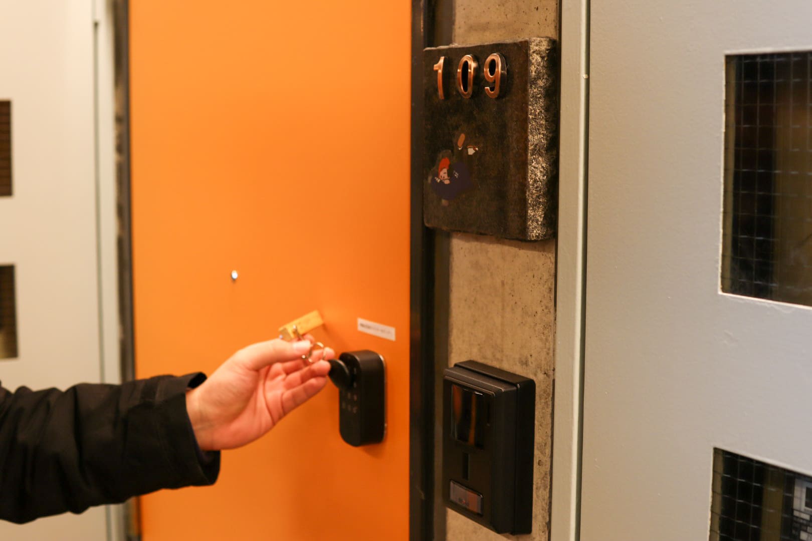 今回筆者が泊ったのは、1階109号室の和モダンD。部屋の鍵はスマートキーで、ワンタッチで解錠と施錠ができるので、たとえ荷物で手が塞がっていても簡単に部屋に入ることができます。