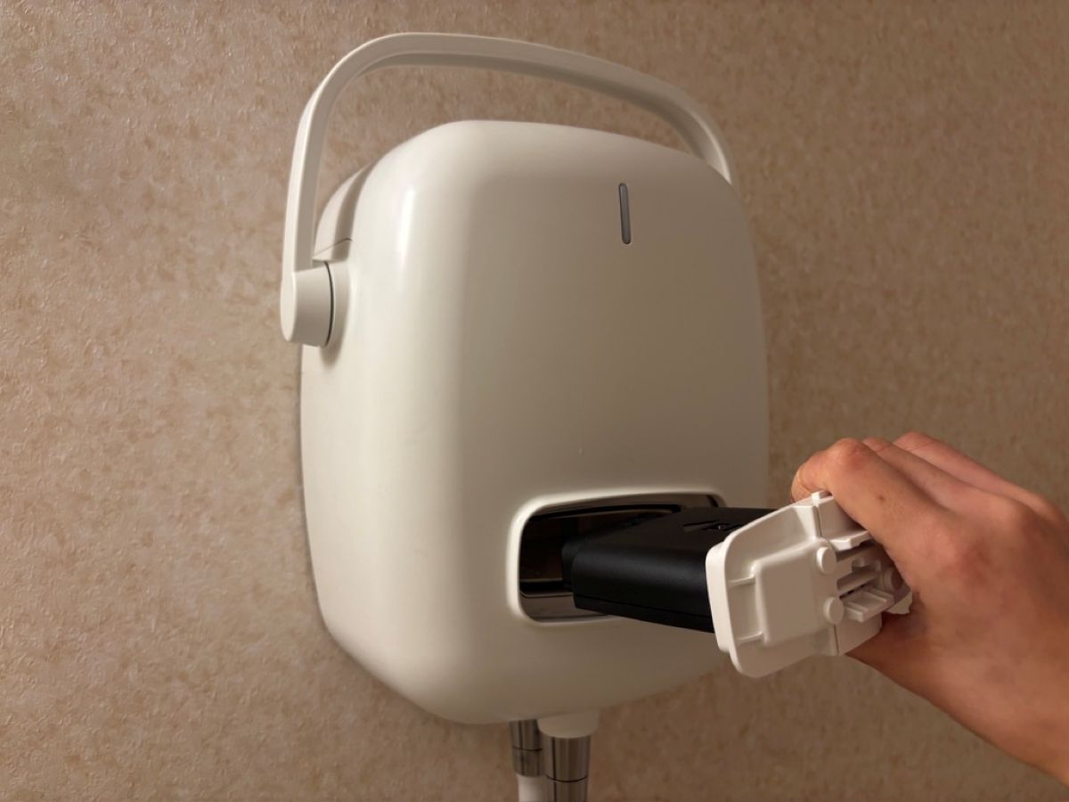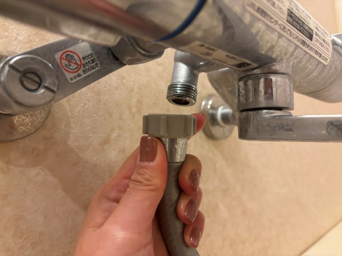 まずは、既存のホースを取り外します。一般的なシャワーホースに接続できるため、賃貸住宅でも導入しやすいのが嬉しいポイントです。