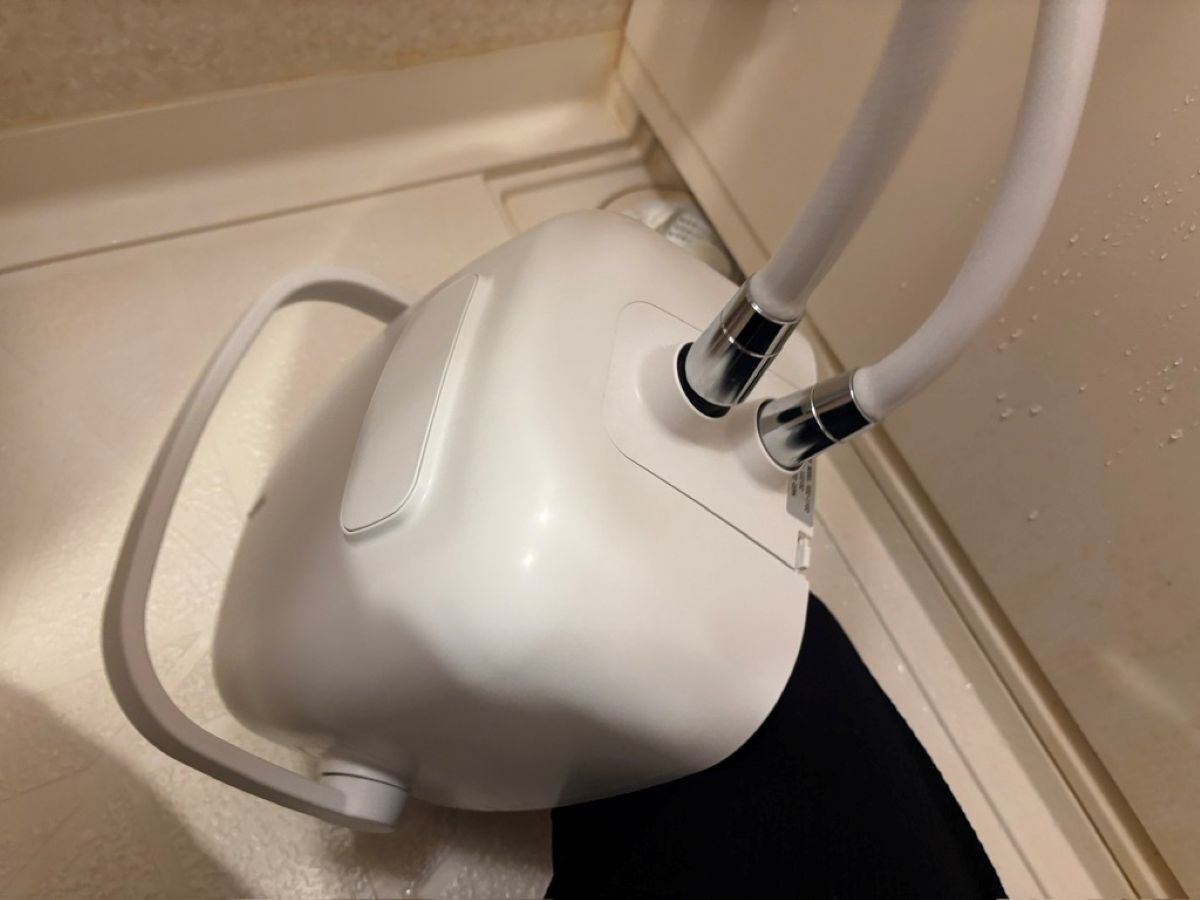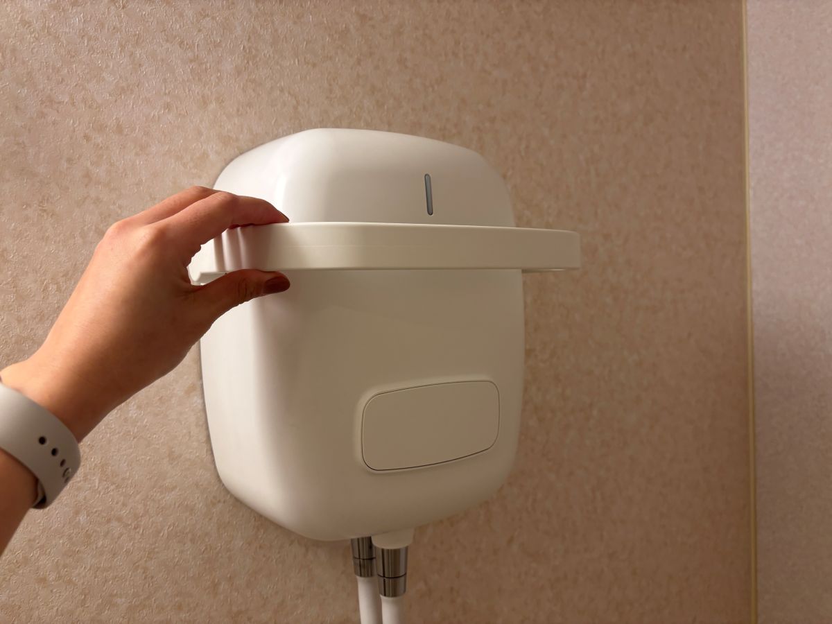 シャワーの水圧や音量は快適で、一般的なシャワーと比べて大きな音がすることもありません。水圧も強すぎず弱すぎず、ちょうどいいバランスです。