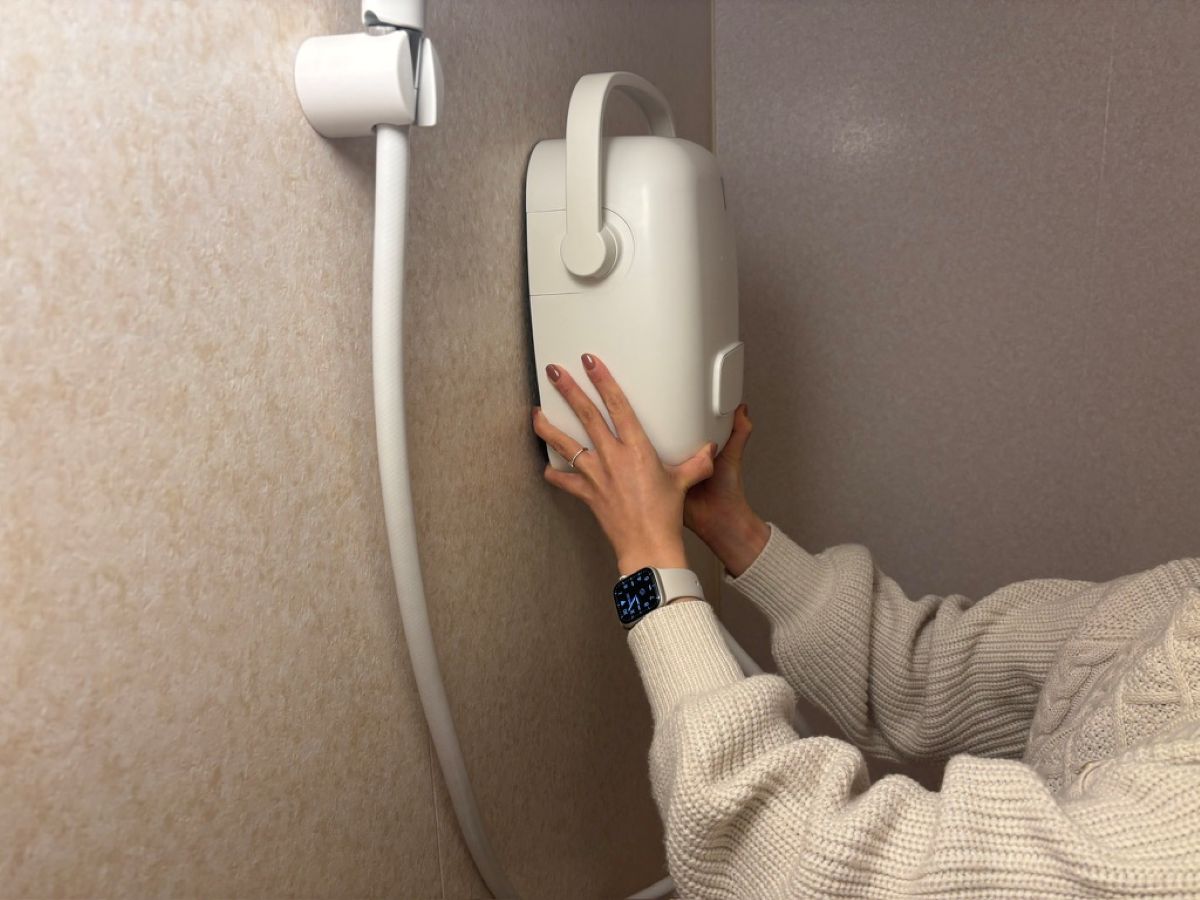 最大のメリットは、工事不要で簡単に取り付けられること。 特別な工具や工事は一切不要で、購入したその日からすぐに使用できます。ただし、磁石を利用して浴室の壁に固定する仕様になっているため、設置前に「浴室の壁に磁石が付くかどうか」は確認必須。磁石が付かない場合は、別途オプションパーツを用意する必要があります。