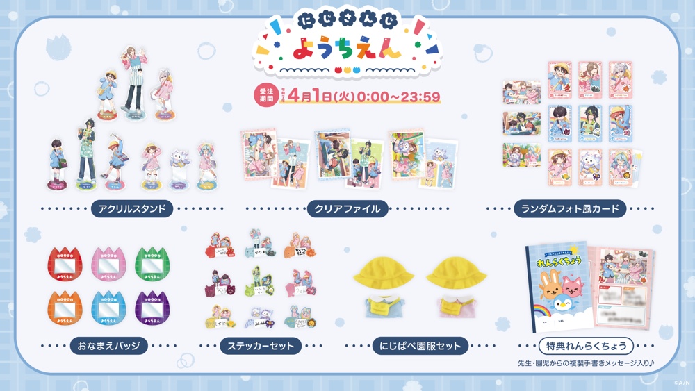 2025.04.01 12:07 4月1日限定『にじさんじようちえん』グッズ 画像ギャラリー [1/9] 文=リアルサウンドテック編集部、画像=© ANYCOLOR, Inc. VTuberにじさんじANYCOLOR ポスト シェア ブックマーク LINEで送る 次のページ (画像 1 / 9 ) 記事に戻る 次のページ この記事の画像一覧