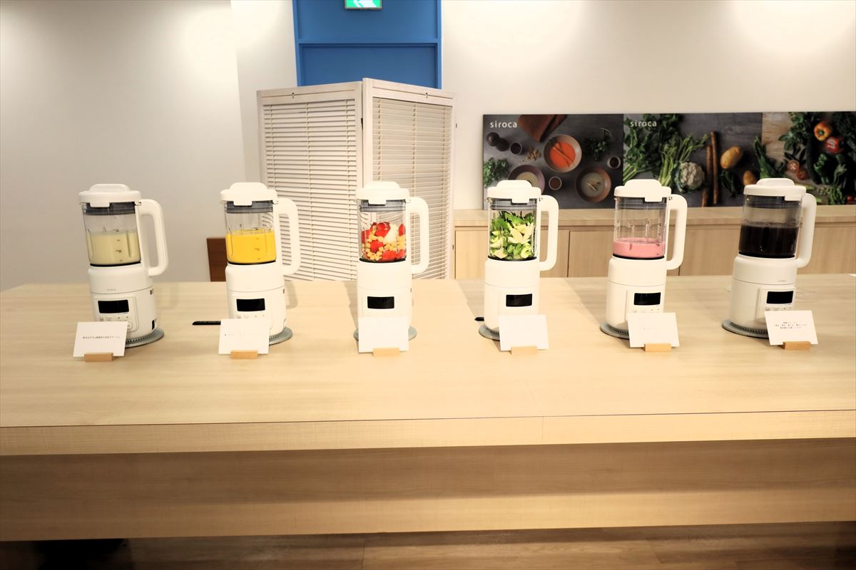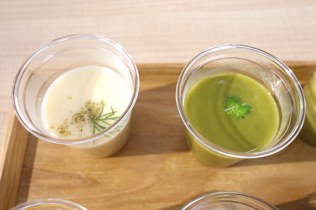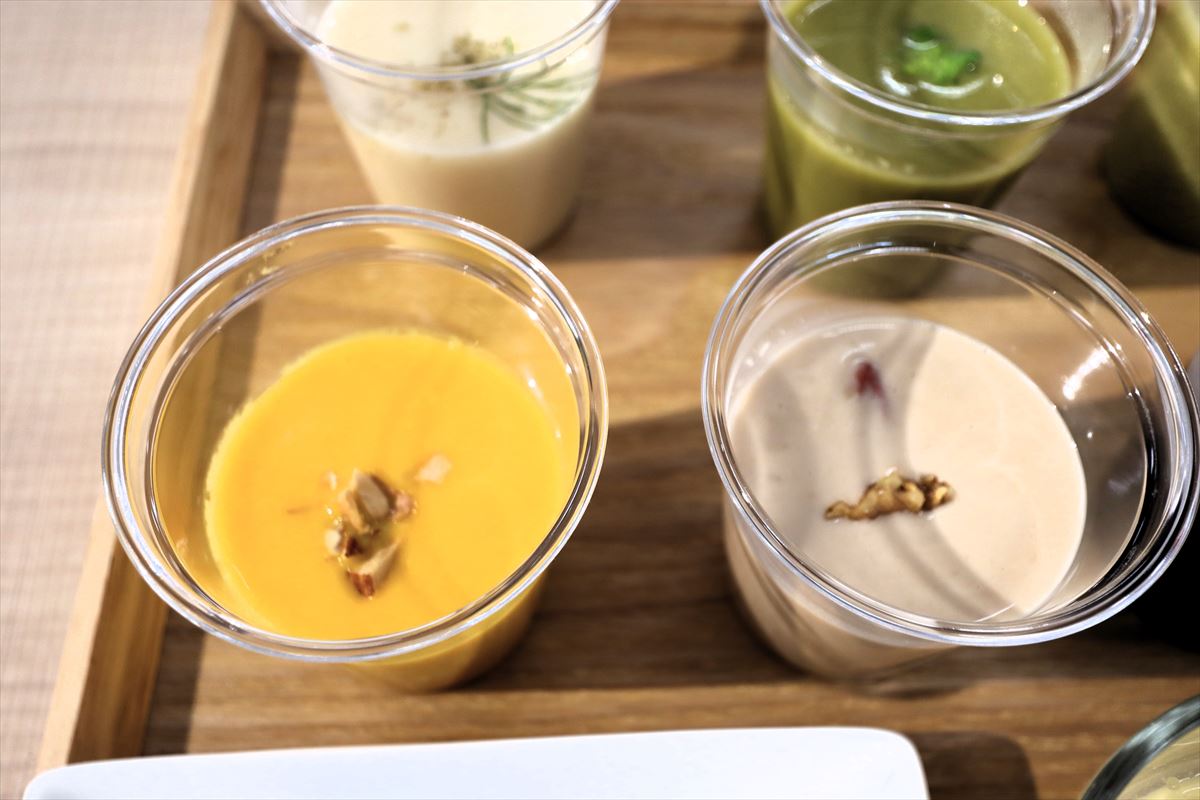 参加してきたのはシロカの『おうちシェフBLENDER』を使った“デトックス・スープバー”イベント。同イベントだけの限定メニューや栄養管理おすすめ春メニューなど、11種類のスープと料理の試食会だった。