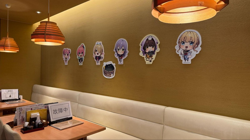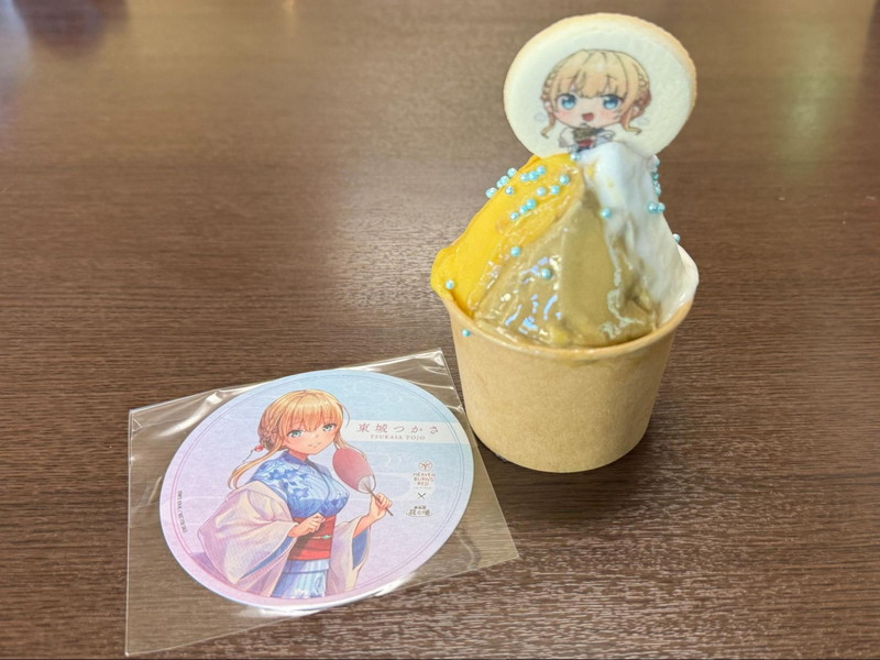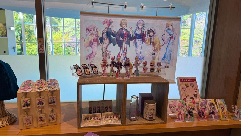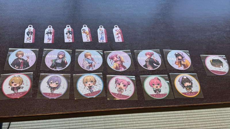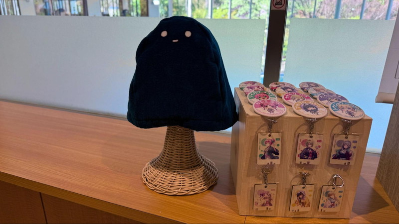 2階の売店コーナーでは、コラボ限定グッズが販売中。艶やかな浴衣姿の描き下ろしイラストをあしらった「等身大アクリルスタンド」(1,870円)や「B2サイズタペストリー」(3,300円)から、トレーディング形式の「ミニキャラアクリルスタンド」(880円)、「等身・ミニキャラ缶バッジ」(550円)・「クリアカード」(660円)、「ドッグタグ」(880円)など、思わず集めたくなる小物系も充実。