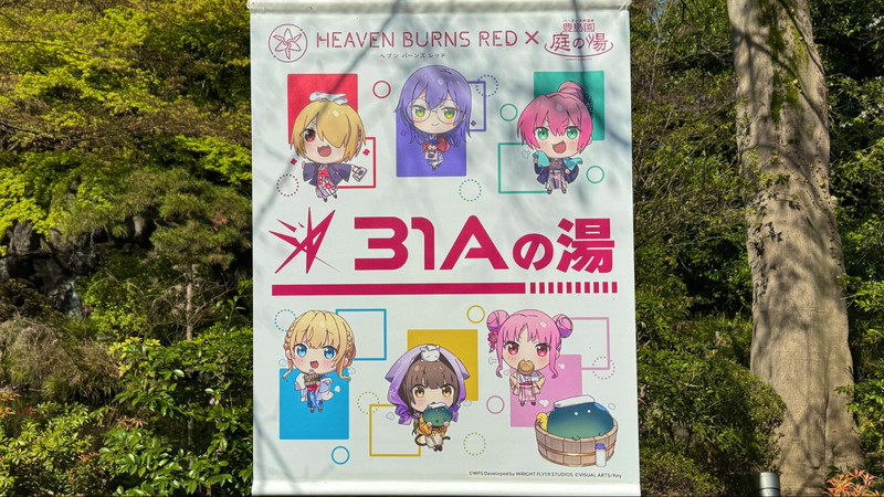 ライトフライヤースタジオ×Keyが贈るドラマチックRPG『ヘブンバーンズレッド』(以下、ヘブバン)が4月3日から4月30日まで、東京・練馬区の温泉施設「豊島園 庭の湯」(以下、庭の湯)とのコラボイベントを開催中だ。今回はそちらのメディア向け体験会に参加する機会を得たので、本稿にてレポートする。