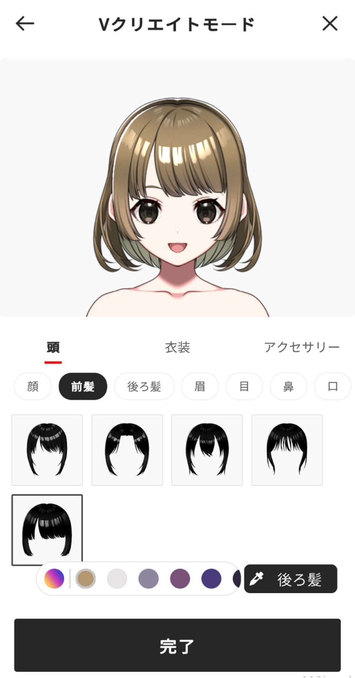 髪型や髪色・目のかたちなど想像以上に細部まで選べるパーツが多く、ゲームのキャラクリをしているようで楽しかったです。